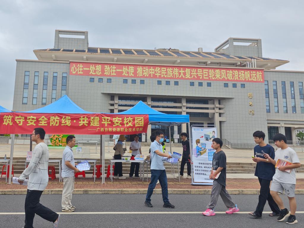 为切实增强广大师生防范电信网络诈骗的意识和能力,共同营造安全、清朗的校园网络环境,6月12日,广西自然资源职业技术学院图文信息中心党支部携手中国移动通信集团广西有限公司扶绥分公司党支部、城厢派出所,在图书馆前广场、食堂广场联合开展了“筑牢安全防线 共建平安校园”反诈与网络安全主题党日活动。本次活动将党建与校园安全实际需求紧密结合,通过形式多样的互动宣传,将反诈知识送到师生身边。