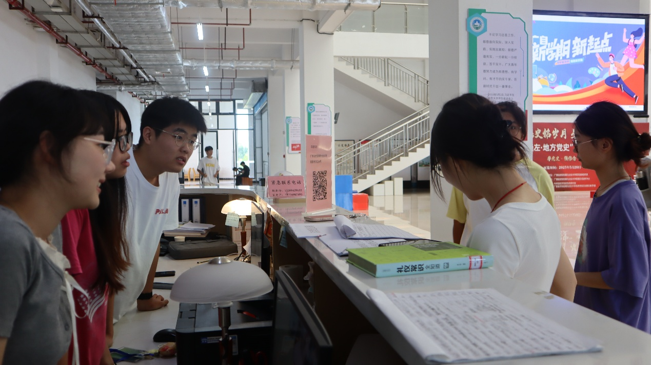 工作人员热情为新生解答问题