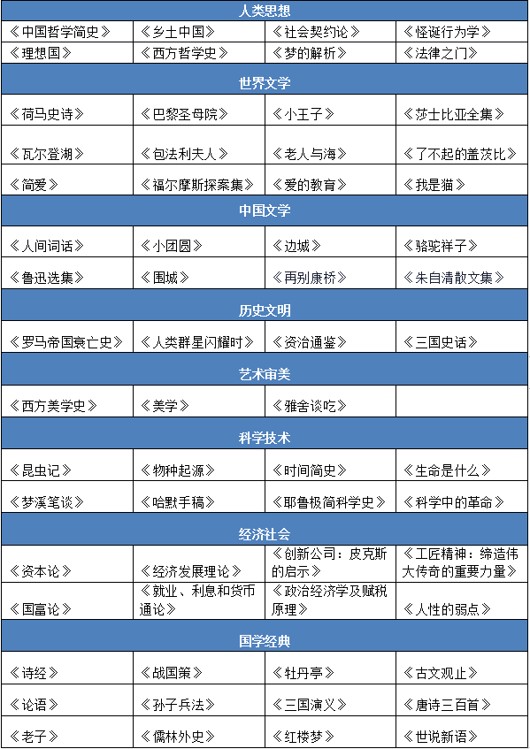 本活动设置“国学经典”、“中国文学”、“世界文学”、“人类思想”、“历史文明”、“艺术审美”、“科学技术”、“经济社会”八大阅读板块,精选经典图书,内置相关知识测评。