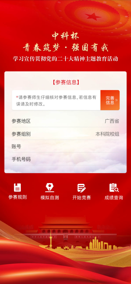 2.为保证本次竞赛的公正性和真实性,参赛师生必须以本人手机号注册账户,每人(以手机号为准)仅有一次竞赛答题机会。