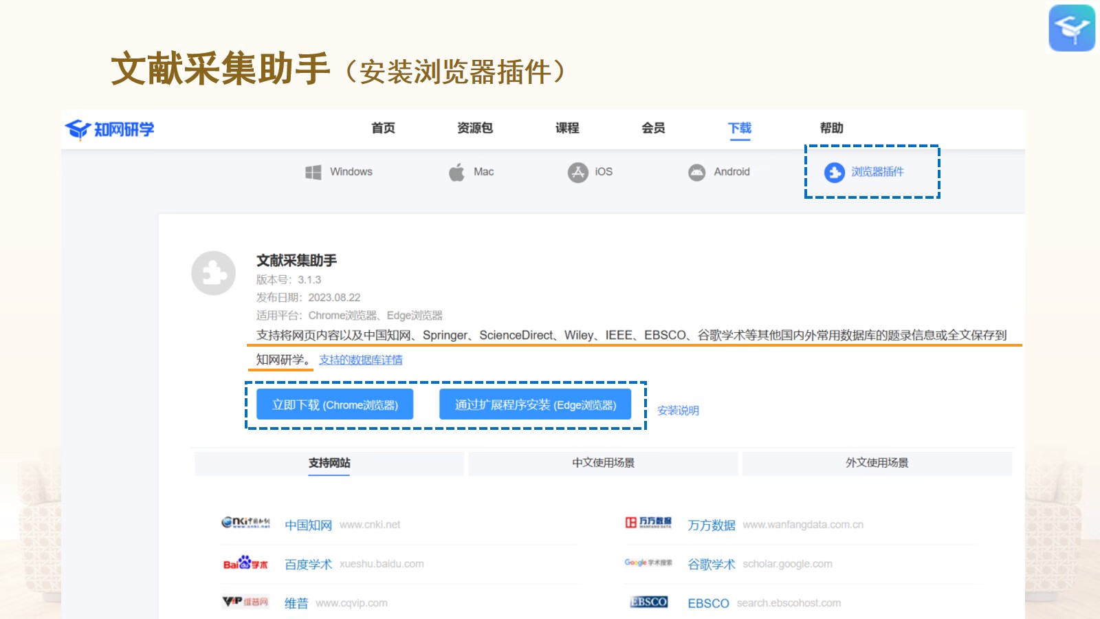 请参加培训的老师提前安装好知网研学平台客户端和文献采集助手,安装方法详见附件。如果仍然不清楚如何安装,请在培训时带上笔记本电脑,届时讲师将会进行现场安装演示。