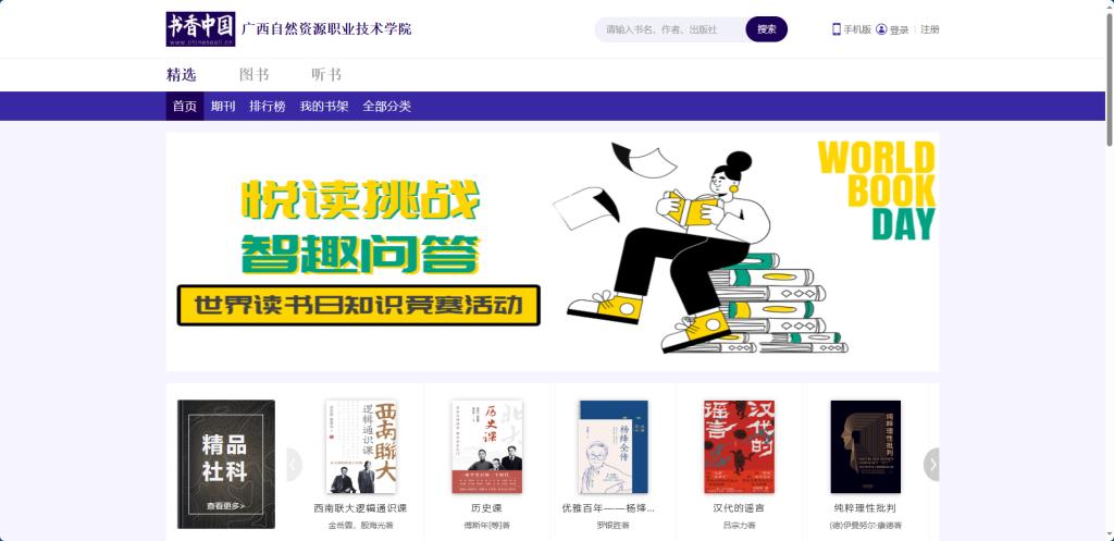 2.微信端:关注公众号“广西自然资源职业技术学院图书馆”,在菜单栏点击“书香中国”